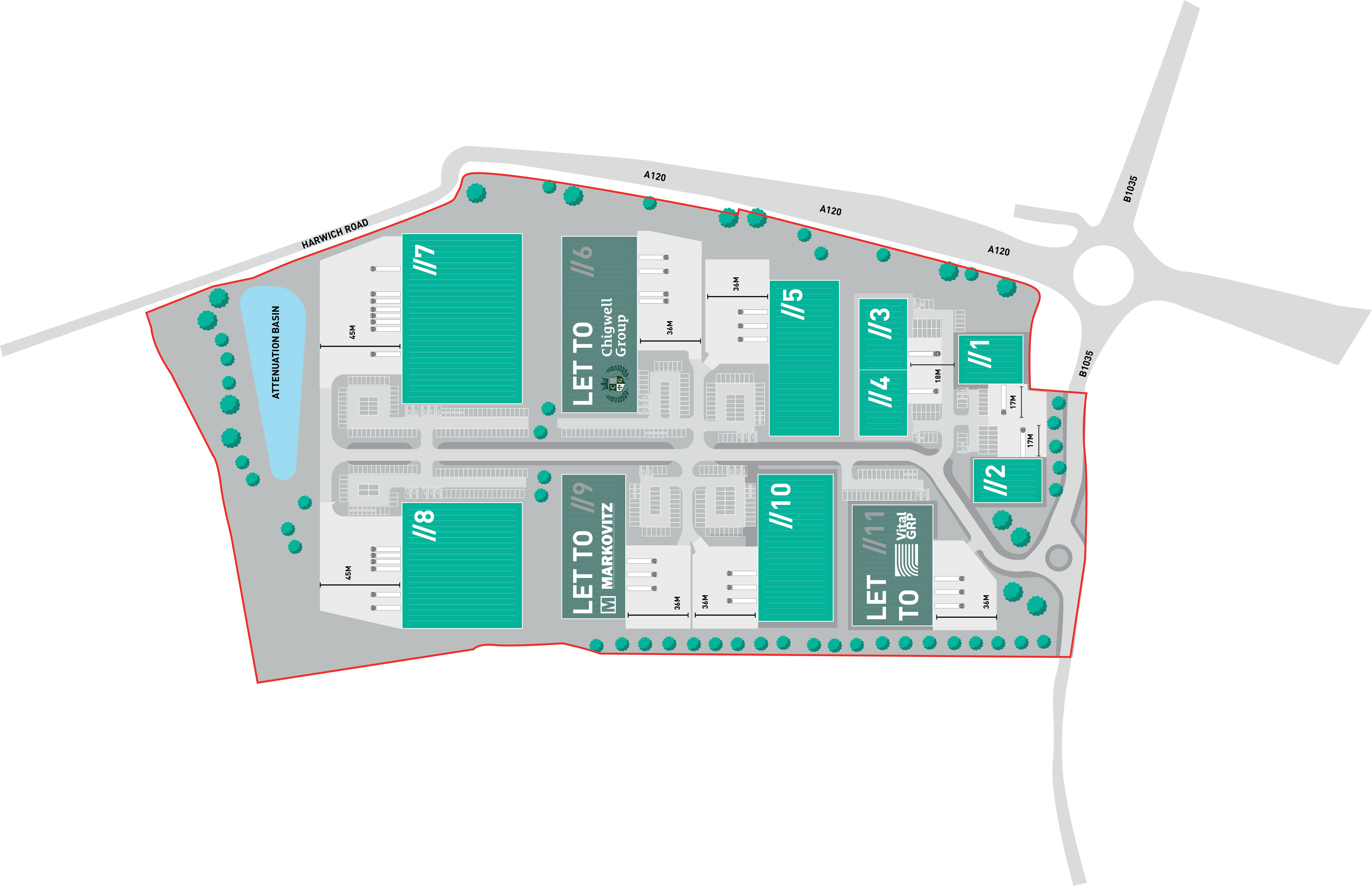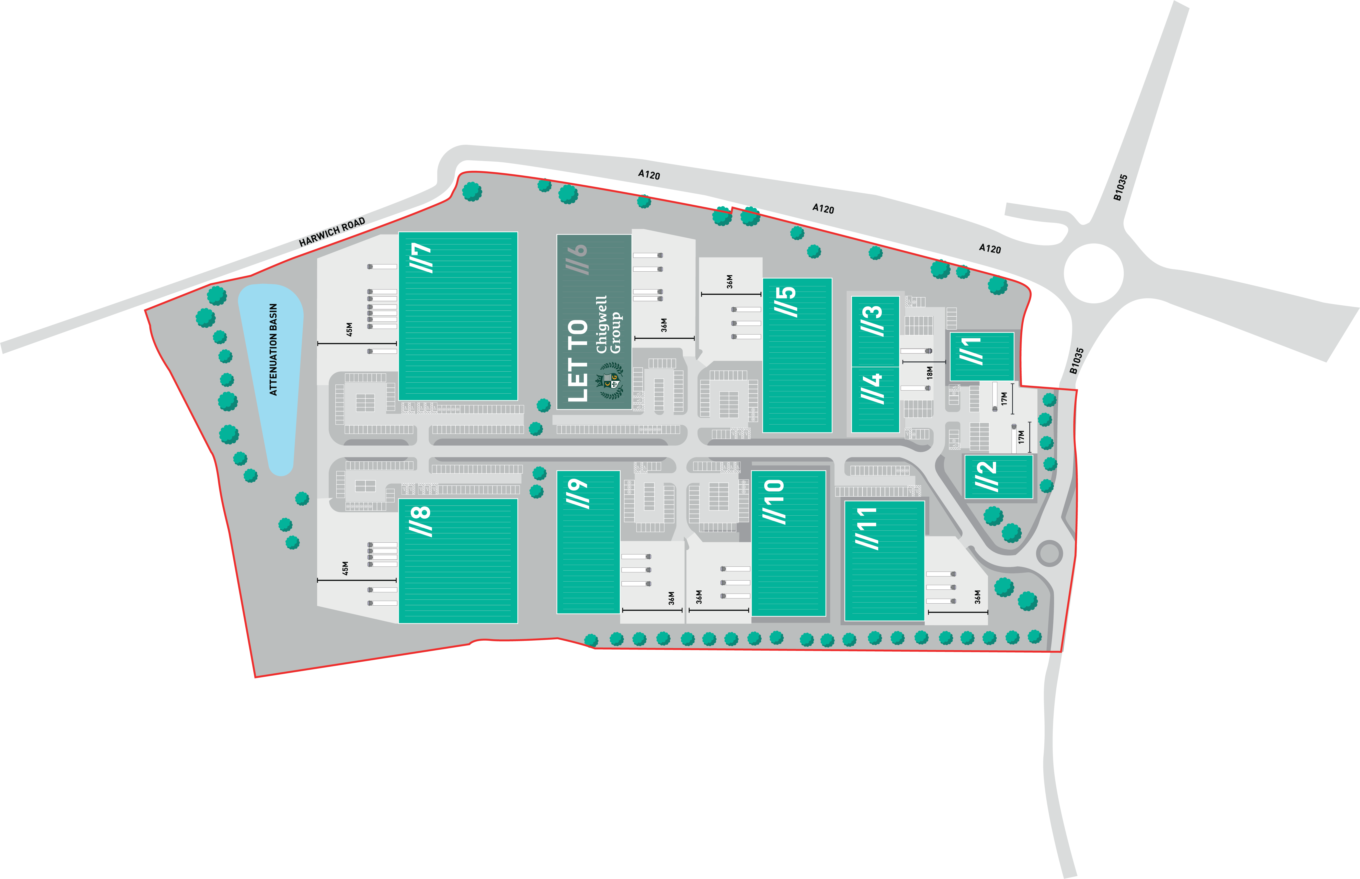 The secure gated site has units ranging in size from 11,123 - 70,601 sq ft, with yards up to 45m and dedicated office space to each.